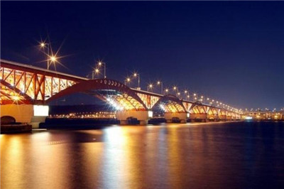 夜晚的汉江以多座横越的桥为主题,桥下的水面交织星光熠熠的楼宇,像是专为恋人打造的浪漫背景。